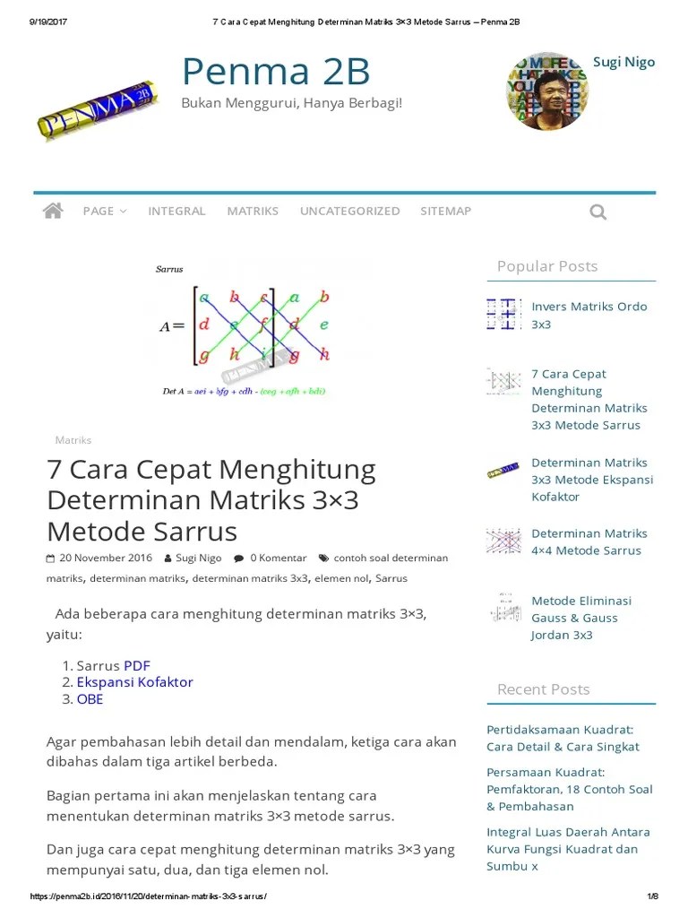 Contoh Soal Determinan Matriks Ordo 3X3 Metode Sarrus : Determinan Matriks 4 4 Metode Sarrus Penma 2b / Berikut detail informasi tentang contoh soal determinan matriks ordo 3x3 metode sarrus.